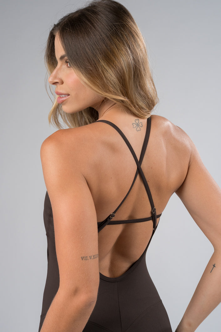 Alças finas que harmonizam com tira de sustentação, conferindo mais segurança para seus movimentos.